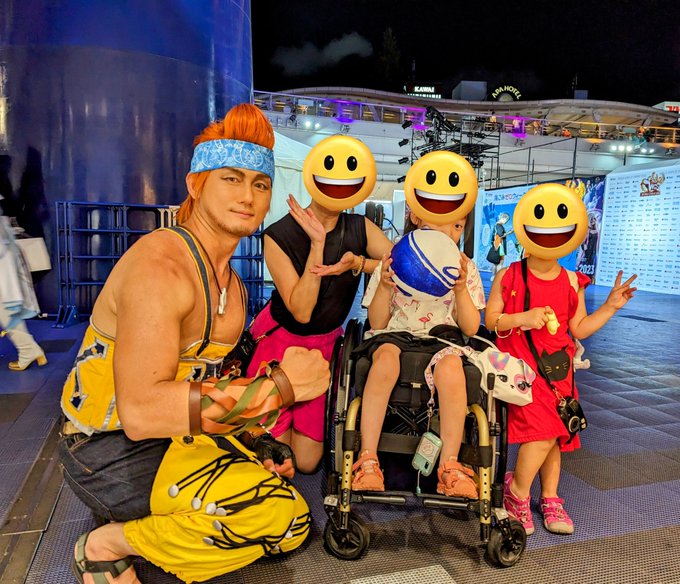 442 1964 コスサミで車イスに乗った小さなお姉ちゃんと妹ちゃんがお母さんがFF10のワッカが好きらしく必死に「お母さんの好きなワッカがいる❗」と言って知らせて、一緒に写真を撮る事が出来たZッ🐥ブリッツボールを渡したら喜んでくれたZッ✨ 23/08/05 21:03