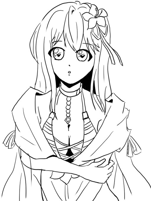 ようやく2枚目。塗り絵状態。 『ちょっとほっぺ触らせて』の図。 誰か着色してくれないかなぁ………… とか言ってないではやく自分でできるよう勉強するか。 #花雲りん #ふらわぁーと