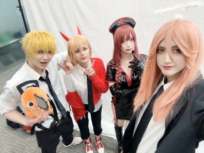 天使の悪魔(@Dio_s2 ) マキマ(@Mireiumi_tomoe ) パワー(@ramiel_cos ) デンジ(わんこ) #となコス #チェンソーマン
