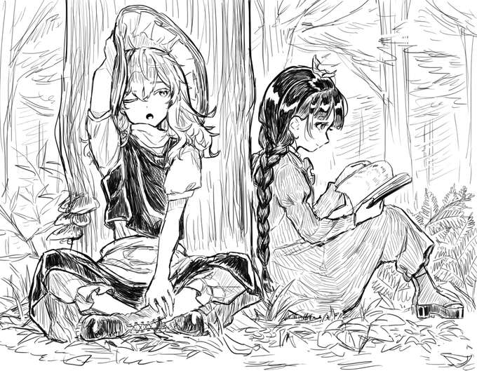 14 43 女苑と小傘 色は付けられなかった… #深夜の真剣お絵描き60分一本勝負 18/11/10 23:00
