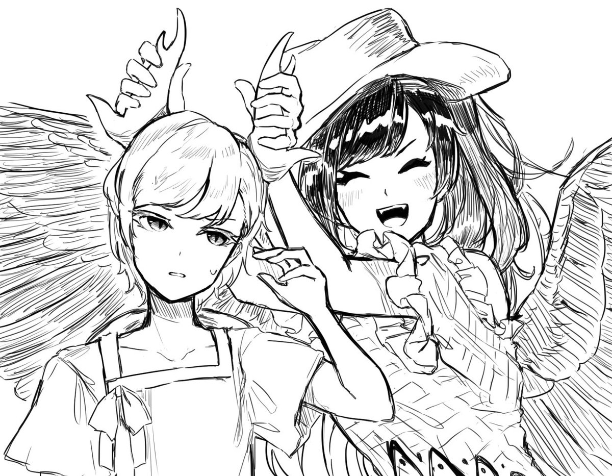 23 72 こころと早苗さん描きました 背伸びしたときにお腹が見えるのが好き 20/12/18 19:49