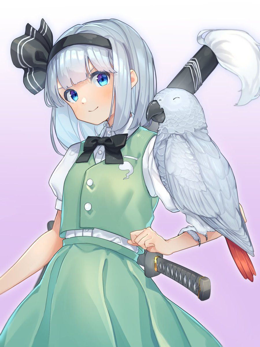 今日は妖夢の日ということで妖夢とヨウムを描きました