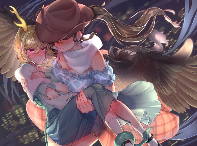 199 630 Skebのリクエストで八千慧と早鬼を描きました! 以前描いた漫画のワンシーンを再現してほしいとのことでした(お姫様抱っこって良いよね) 23/04/07 22:03