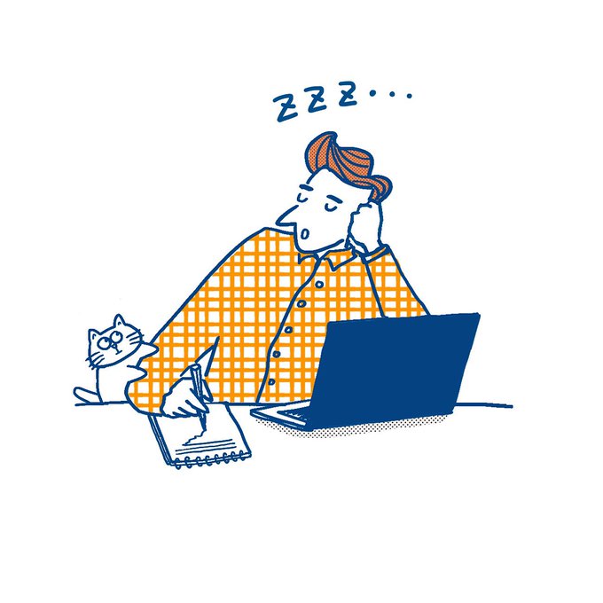 眠くなってきたよ〜💤 寝ちゃだめニャ🐈…みたいな会話 #イラスト #イラストレーション #人物画 #猫 #挿絵 #デジタルイラスト #illustration #artwork #degitalart