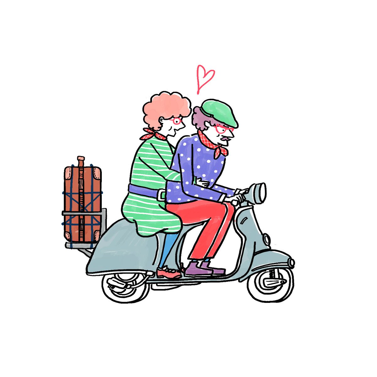 Happy Valentine’s day❤️ 🧔しっかり捕まってろよ~🏍👜 👵は~い✨ #イラスト #イラストレーション #バレンタイン #旅行 #デジタルイラスト #illustration