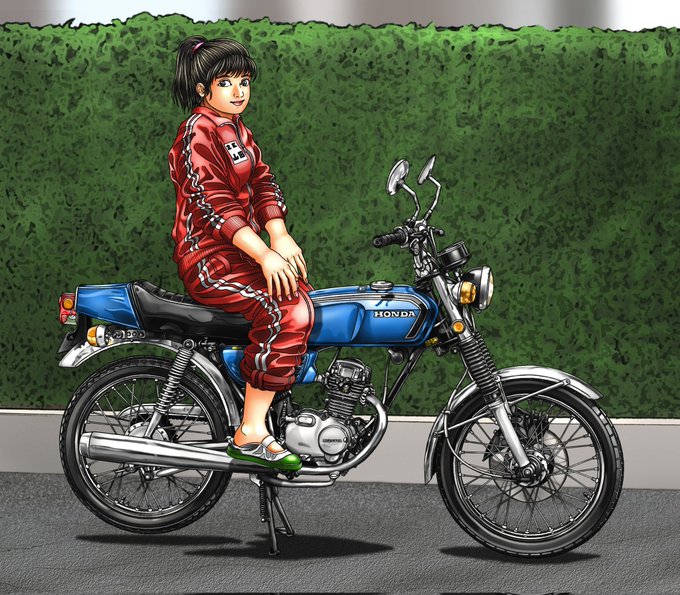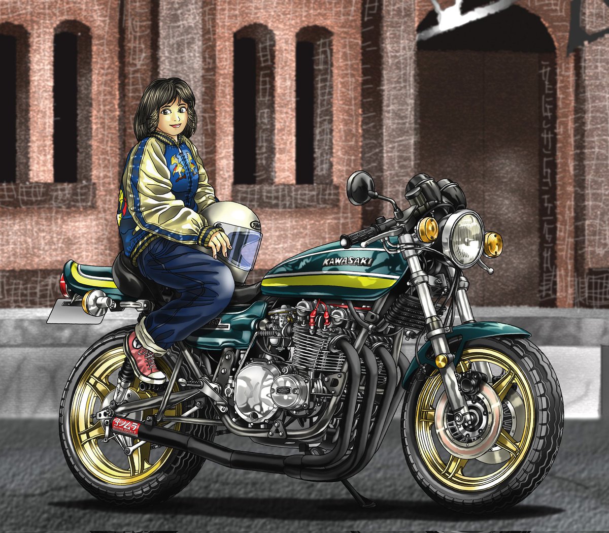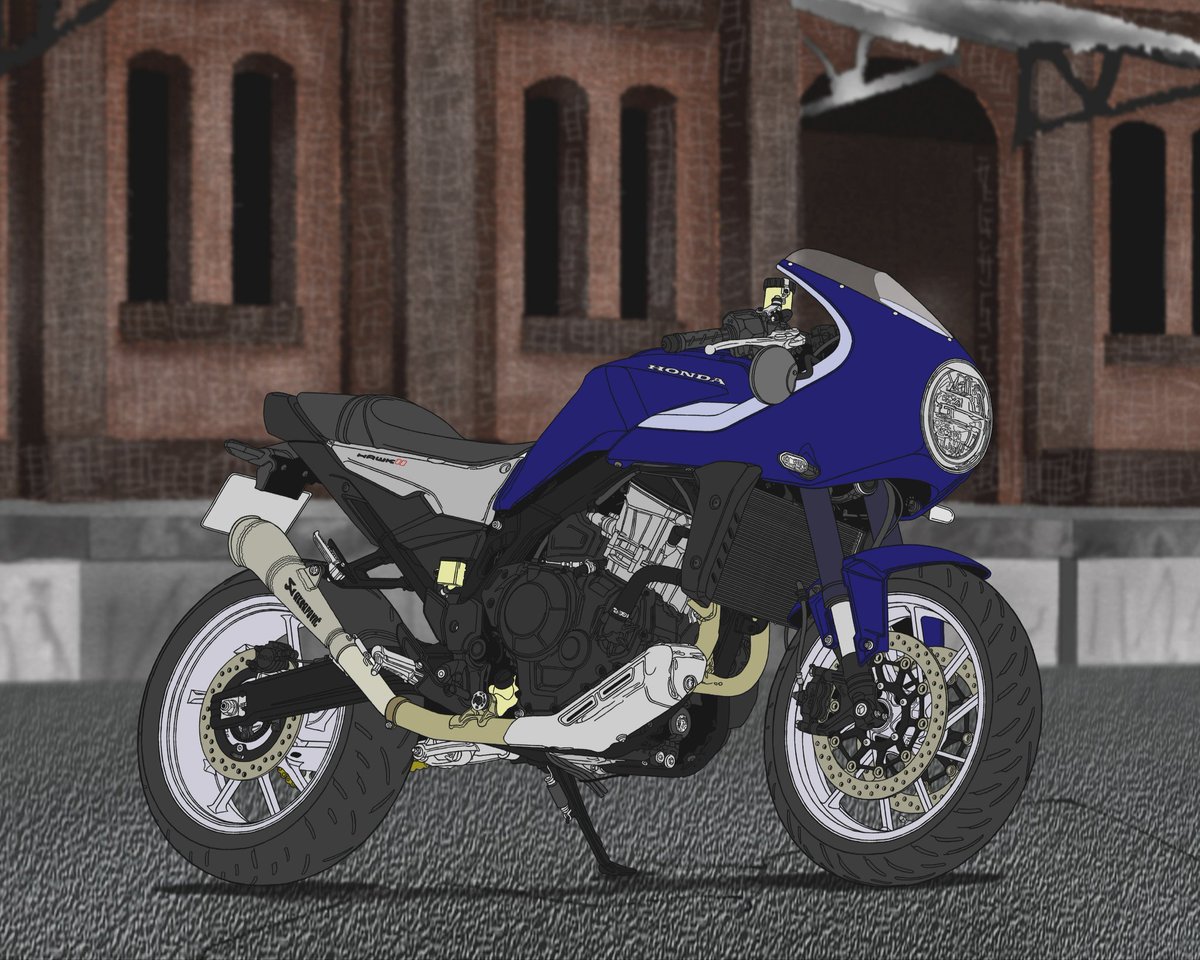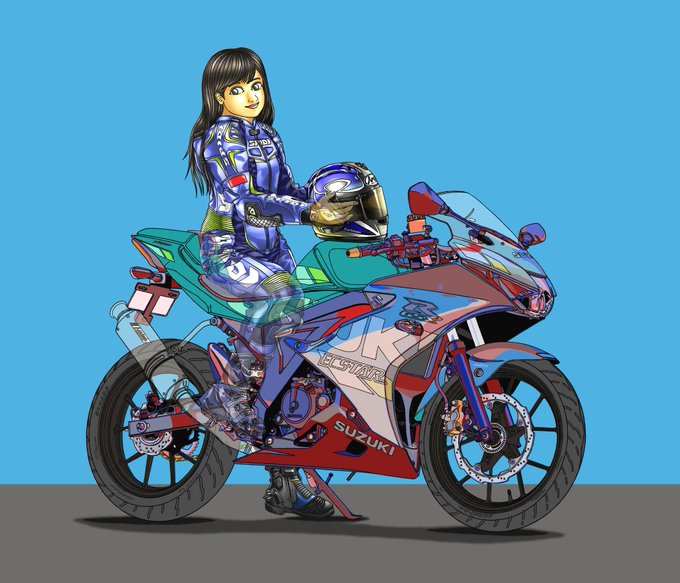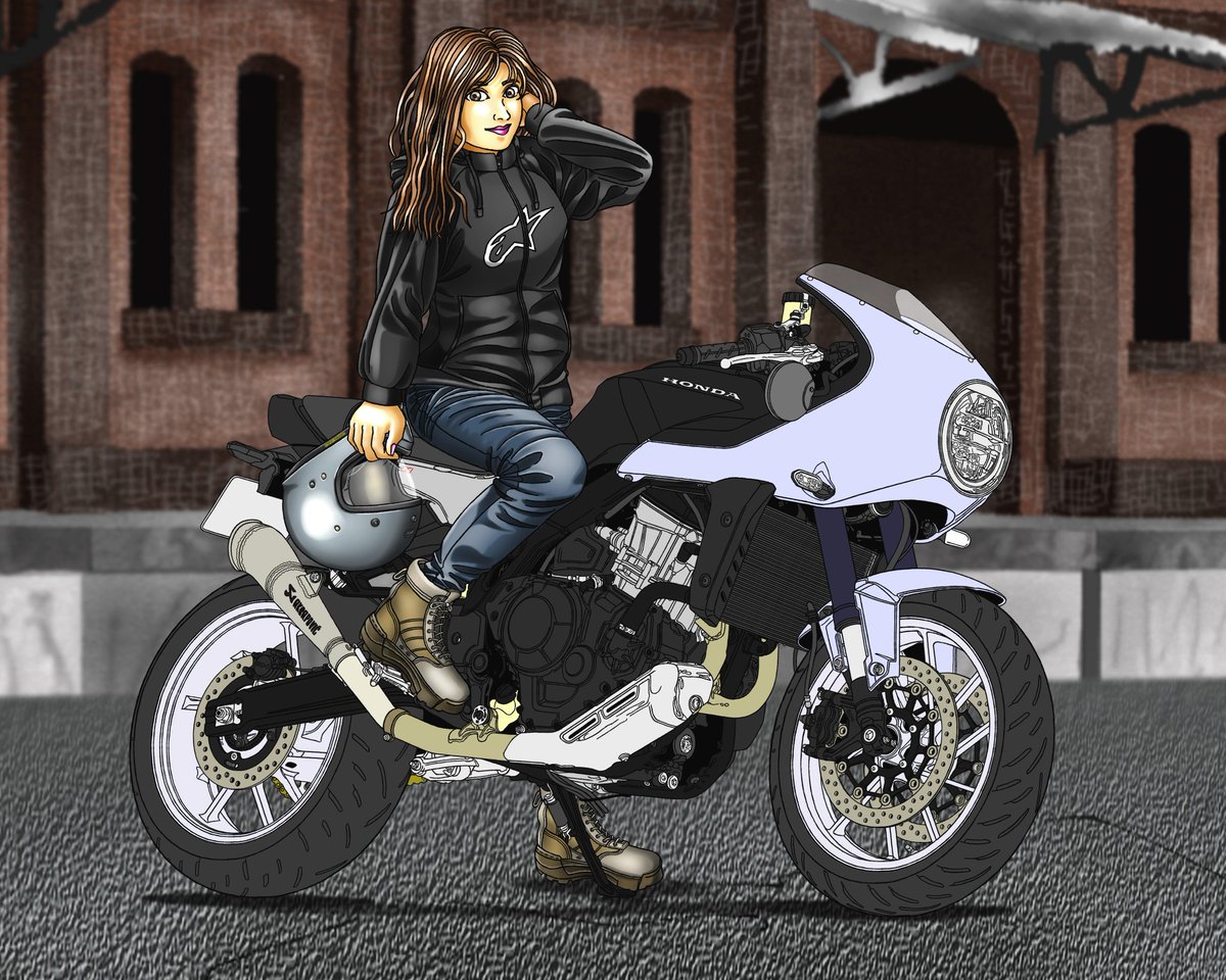 SRファイナルエディションをベースに、カフェ仕様やトラッカー仕様にしたくて資料漁って、人物もロッカーズ風革ジャンとかレッドウィング風のウォレットやら調べたりと結構頑張ってましたね。 当時のアツさは何処へ? #みなさん去年の今頃はどんな絵描いてましたか
