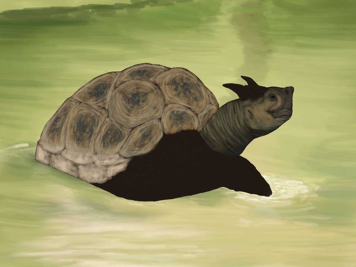 WiP of a Meiolania, a Stem-turtle mainly known from Lord Howe Island, cooling down in a creek. #paleoart #paleontology #digitalart #meiolania #digitalpainting #wip