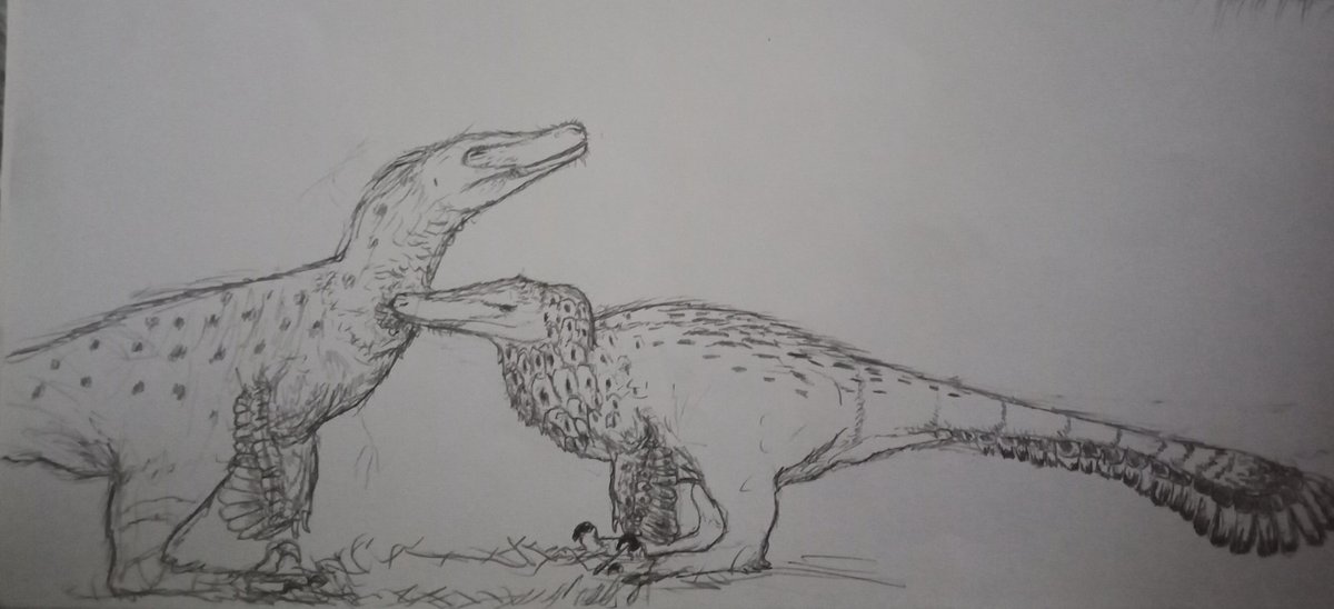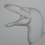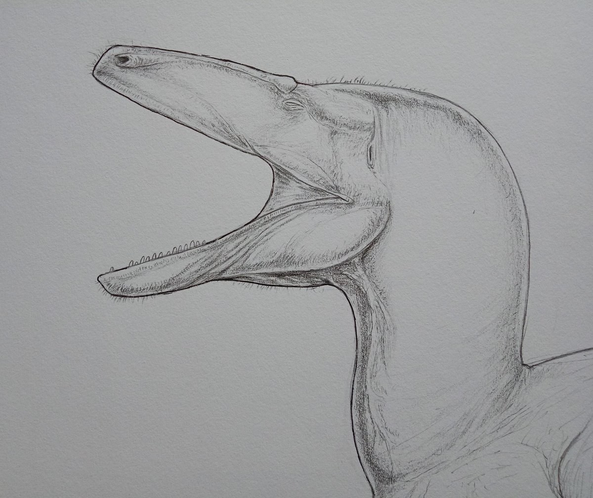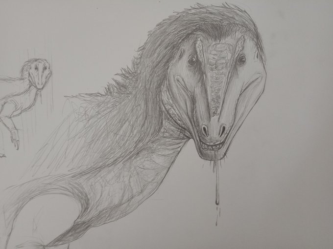 WiP of another sleepy Dino, this time a yawning Australovenator. #paleoart #paleontology #dinosaur
