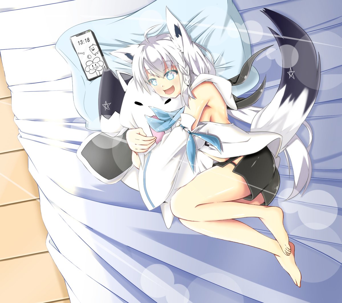 フブラぬいぐるみの抱き込ごちが良すぎて全力で抱きしめている白上🦊 #絵フブキ
