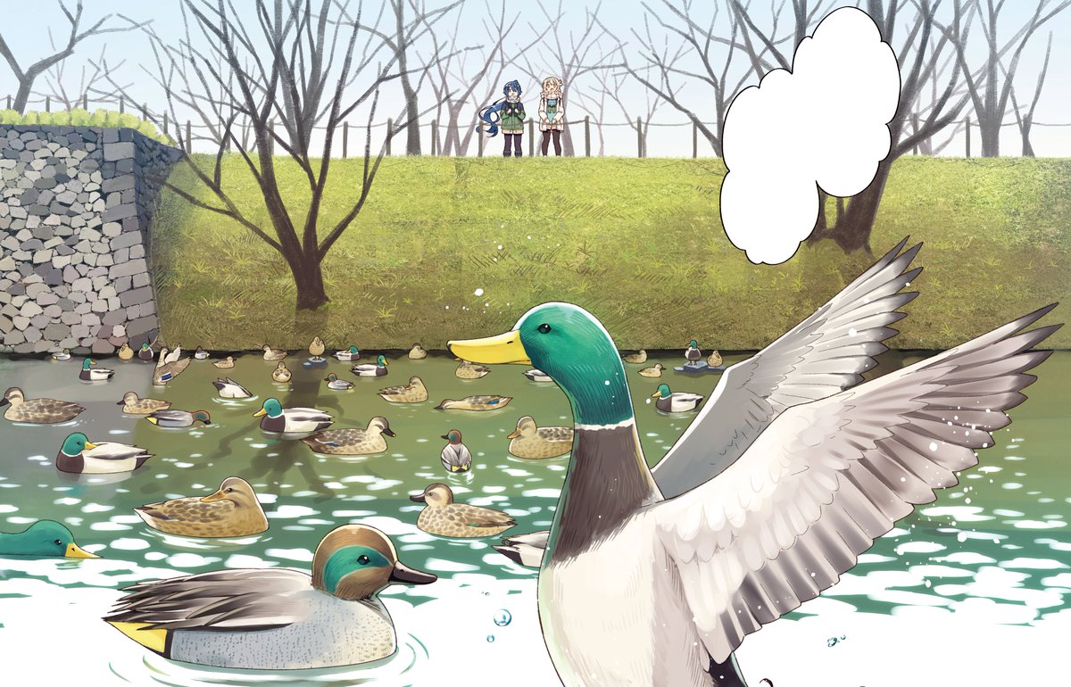 きらら5月号に「しあわせ鳥見んぐ」10話掲載されています。絵のことで悩んでるすず。楽しそうに鳥見をしていますが…? カラーでカモさんをたくさん描きました!ぜひ本誌で確認してみてください🦆✨