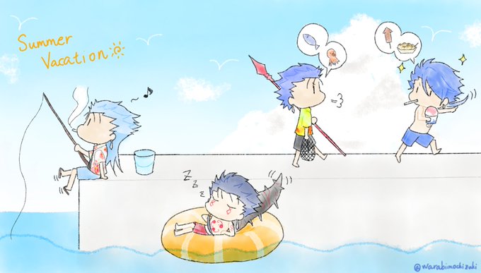 #クーフーリン生誕祭2022 #クーフーリン生誕祭 ドドド遅刻したけどお誕生日おめでとう!!!🥳🎉 去年のリメイク的な感じ+今年は120Lvおめでとう記念でプニキ中心に描きました!!!!!!!