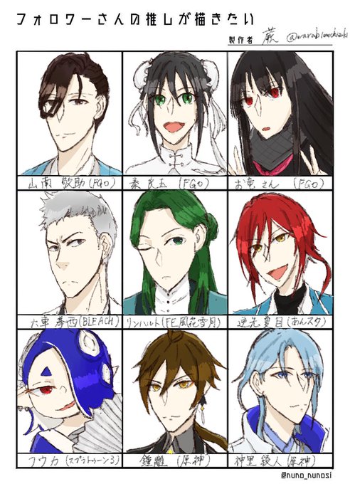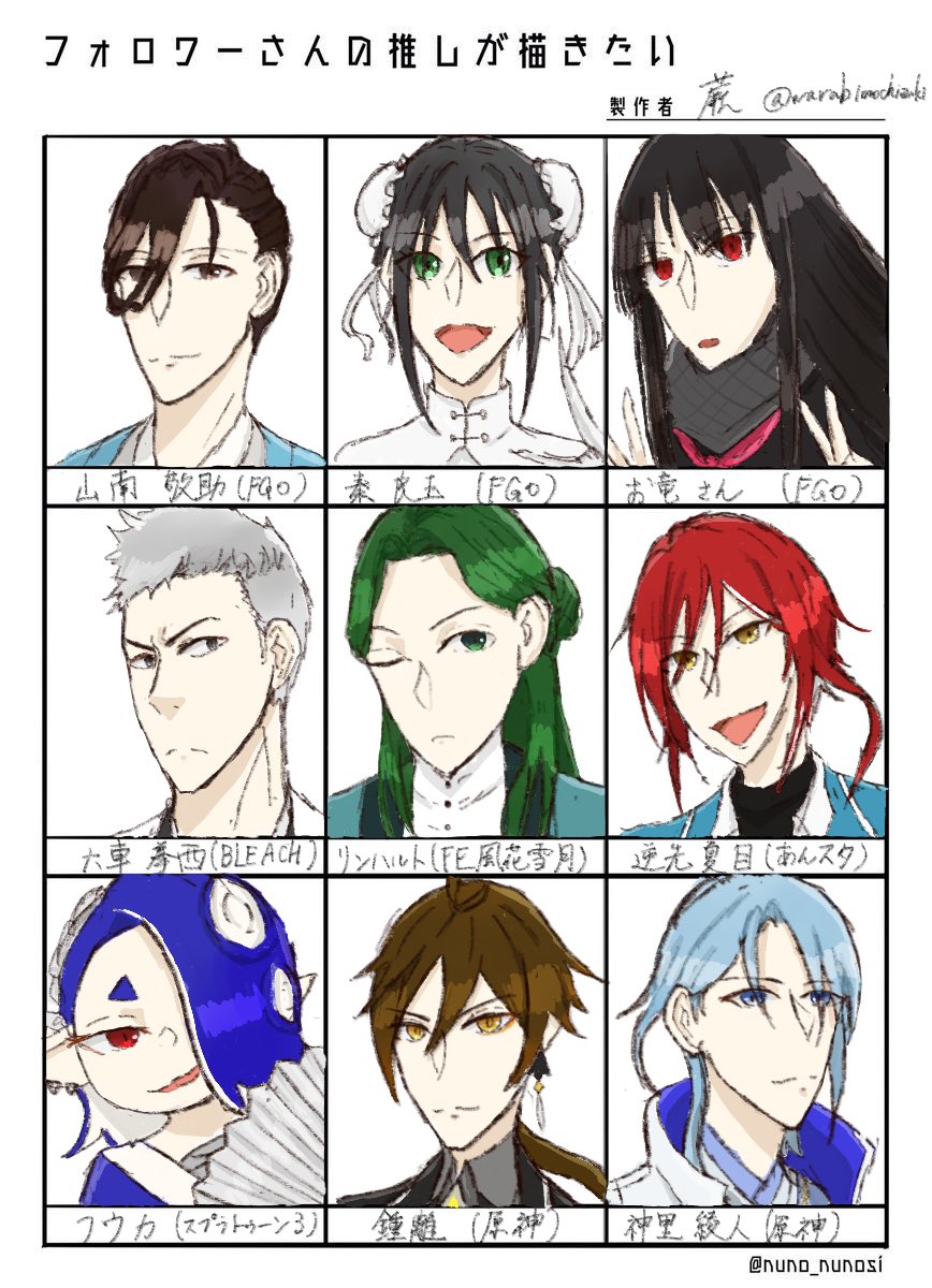 #フォロワーさんの推しが描きたい お待たせしました~~~! らくがき的な感じなので色味などはご容赦ください🙏 あんまり描いたことないキャラもいただけて楽しかったです~~~!!リクエストありがとうございました!!!!!!!!!
