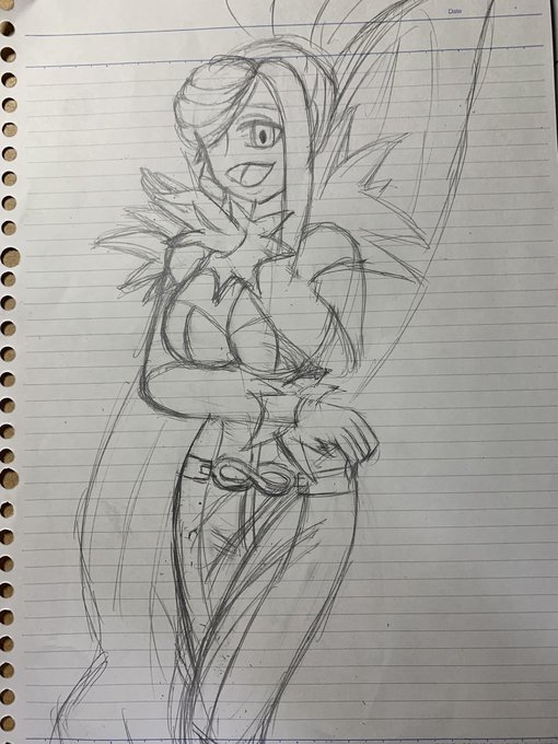 アナログ落書き。 アンダーナイトインヴァースのヒルダ=サンぜ! まだ二十代の筈なのに皆におばさん扱いされてしまうぜ! 髪型か?ファッションなのか? 確かおばさんくさ──(襲ってくる謎の黒いエネルギー) #格ゲーキャラ描こうぜ
