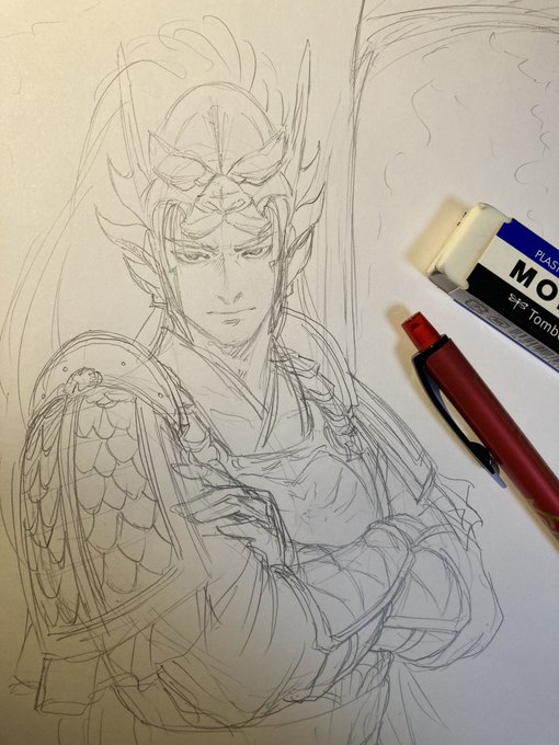 #毎月14日は徐庶の日 振り返ればそこに君が――みたいな、ふっと和む表情を描いてみました。 色々苦悩することも多い徐庶さんですが行く先々で不思議と友人には恵まれている気がしますね… コマ撮り風に髪の動きも少しつけてみたかったけどあまり雰囲気変わらなかった😅