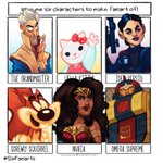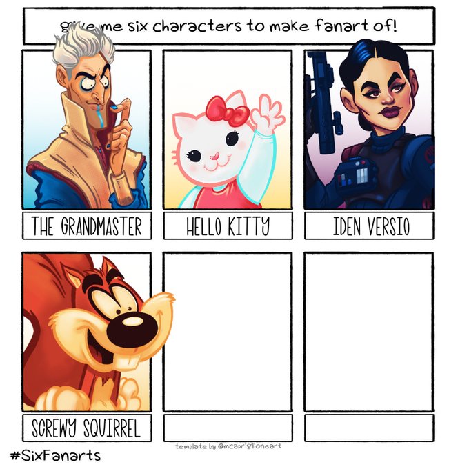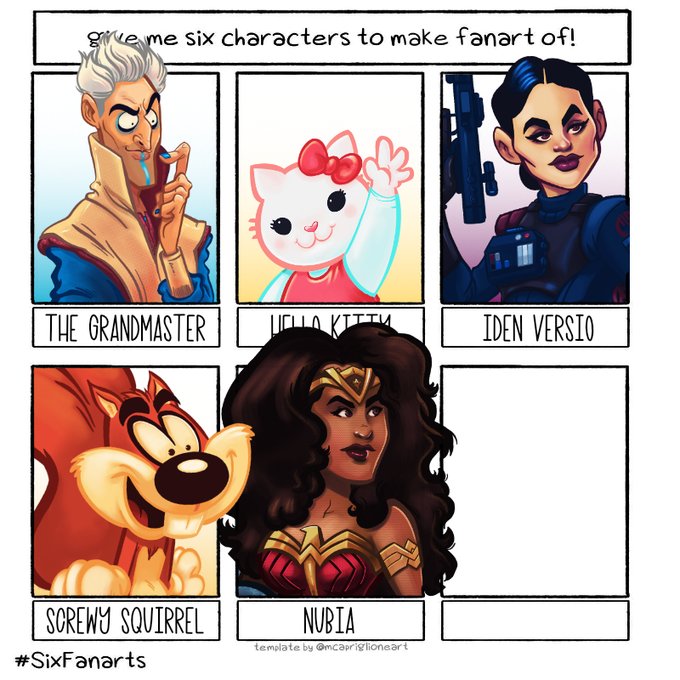 I had a blast doing the first set and I got so many great suggestions I decided to do a round 2 for the #sixfanarts challenge.