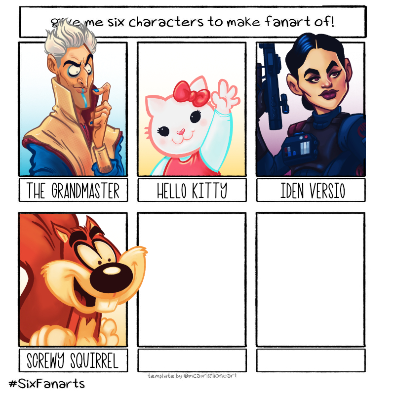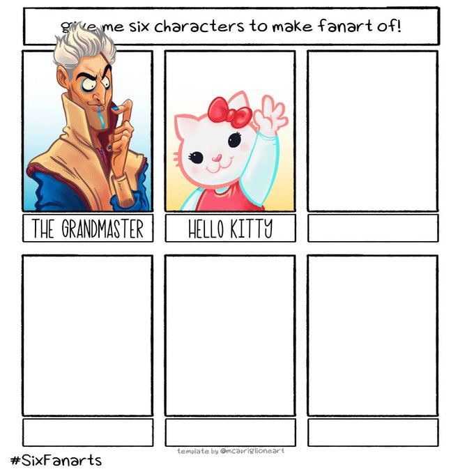 The second character for #sixfanarts is Hello Kitty! She is such a simple design it was a challenge to make her my own. I decided to redesign the character with more cat like features. I think she's super cute and the Grandmaster looks like he agrees. Who's next? Stay tuned!