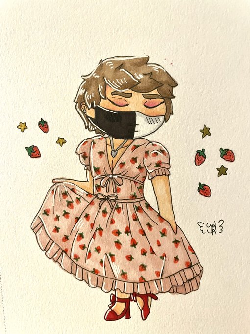 Drawing Ranboo in my sketchbook everyday until it is full day 38 The strawberry dress! The next few days will probably be lil’ boo in other dresses. A look book of sorts :D #ranboofanart