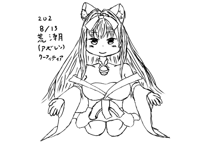 完全な初投稿はちょっと前にやったので、再直近で描いた荒潮ちゃんの初投稿掘り出したら202年に描いたらしい #見た絵師さん強制初投稿の絵と今の絵を比べる twitter.com/warfitia/statu…
