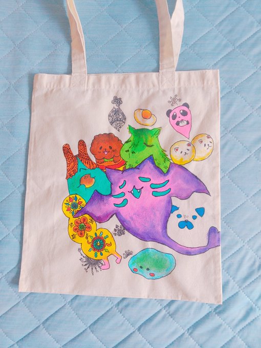 クリスマスなオリジナルトートバッグ🎄 ど真ん中に位置する浮遊するリースを 左上と右下にいるサンタなお化けが睨んでいる 右上はツリーなりかけトナカイ、 左下はツリーなハウス #クリスマス #Christmas #イラスト #イラスト好きな人と繫がりたい #イラスト好きと繋がりたい #お絵かき