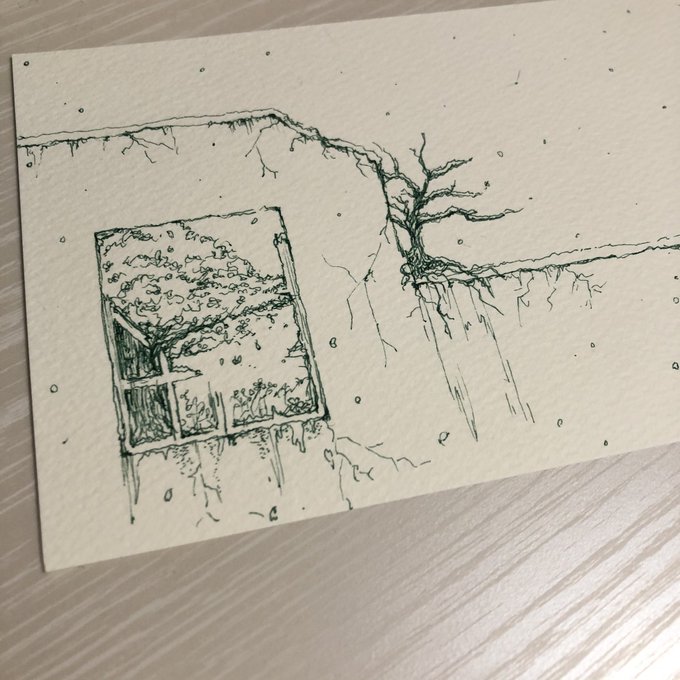 0 4 雪の日にdownyの曲を聴きながらちまちま描いたもの #イラスト #ペン画 #桜 20/04/02 18:48