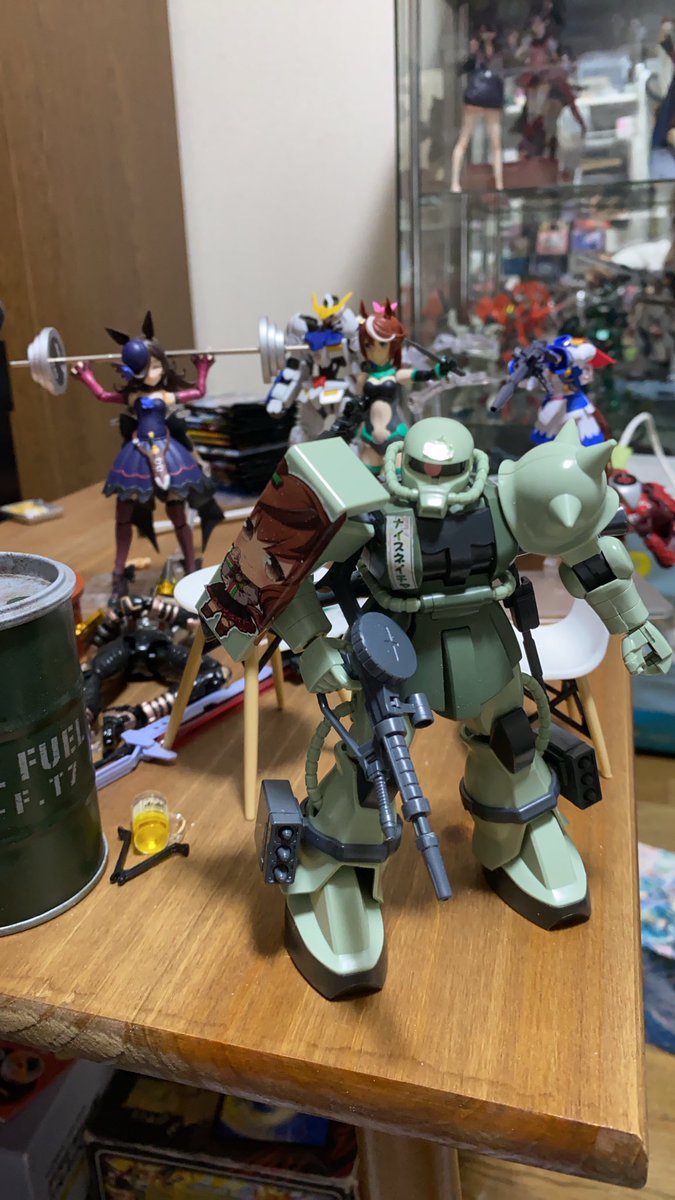 痛MSザクかんせーい まあぱち組みなんだけどね カット分断頑張ればボディの方にも シール貼れるかな とりあえずこれにて完了 次なに組もっかなぁ それにしても机の上やば #ガンプラの画像貼るとRTされると聞いて #ガンプラは自由だ #ナイスネイチャ