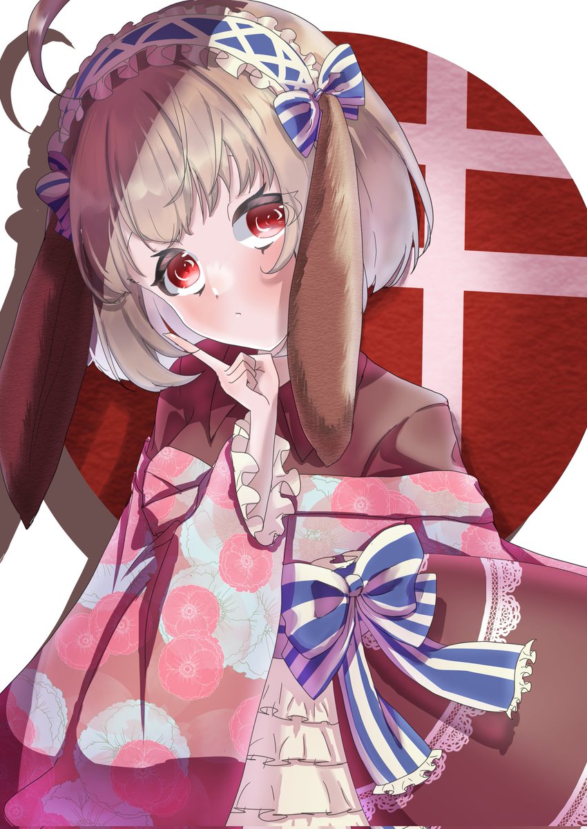 #イラスト うさぎちゃん🐇 この前の絵の着物に柄入れ センスないから適当に素材使ったけど、それでも入れたほうが可愛い😊