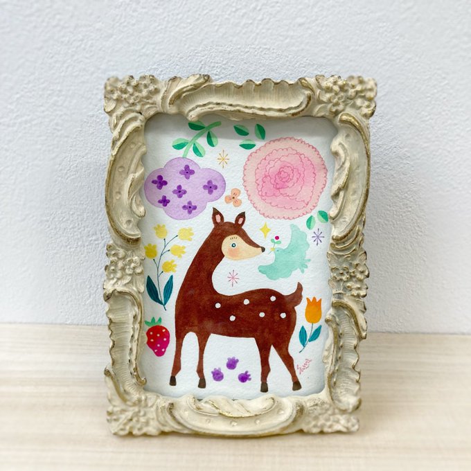 猫バージョンに続き 今回は鹿バージョンです。 ベースは紫色です。 #水彩画 #水彩画イラスト #ひきたさわこ #アトリエわさんぼん #創活 #水彩画アート #アートワーク #watercolor #drawing #art #artwork #illustration #artists #illustration #illustrator #painting