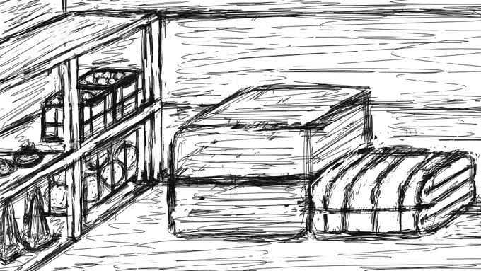 1 1 #背景版深夜の真剣お絵描き60分一本勝負 お題:「ボールかご」「マット」「カラーコーン」 22/09/22 20:48