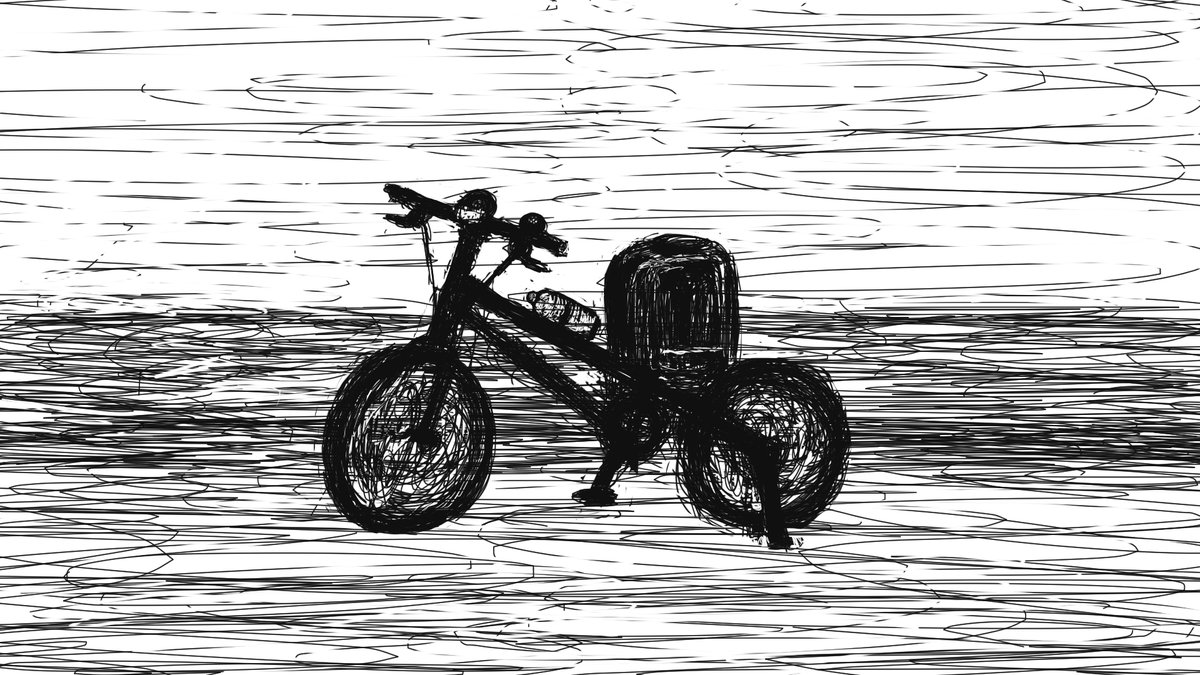 #背景版深夜の真剣お絵描き60分一本勝負 お題:「自転車」「リュック」「ペットボトル」