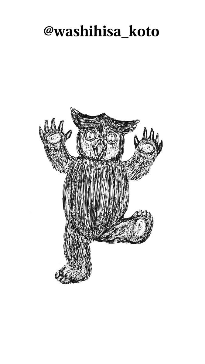 0 3 #人外版深夜の真剣お絵描き60分一本勝負 選択したお題 「“布”から連想する人外」 「オウルベア」 22/10/27 21:08