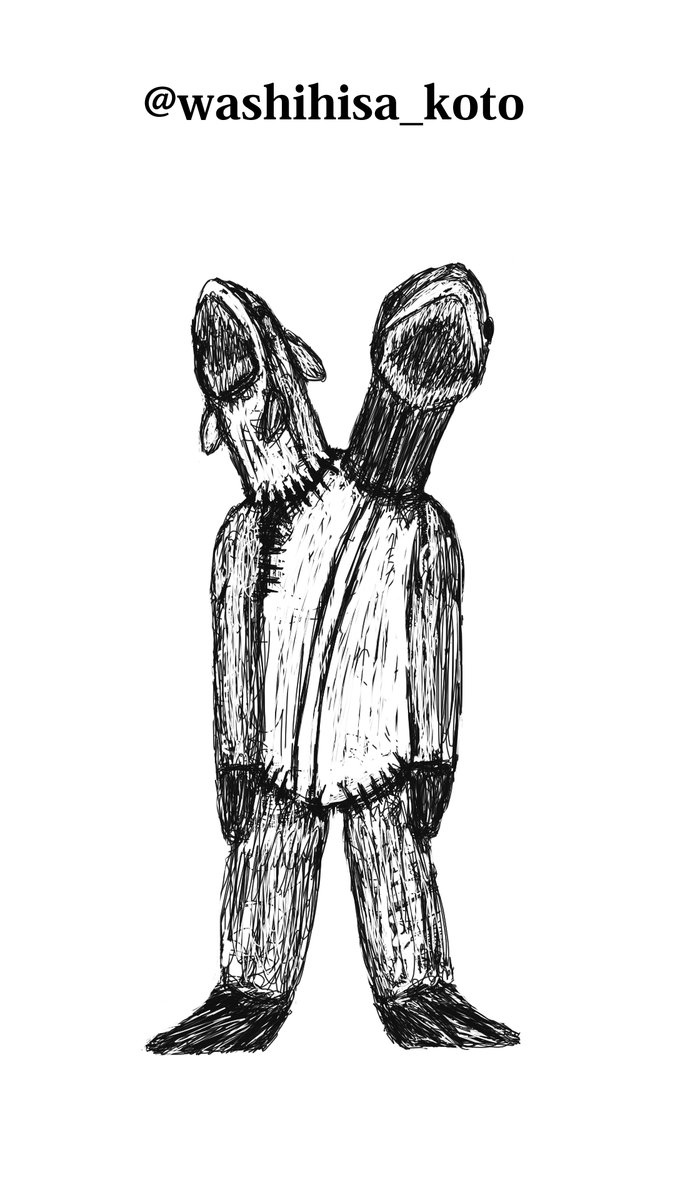 1 4 #人外版深夜の真剣お絵描き60分一本勝負 選択したお題 「アナタが考える双頭のギザ歯人外」 「“ツギハギ”から連想する人外」 23/01/19 21:12