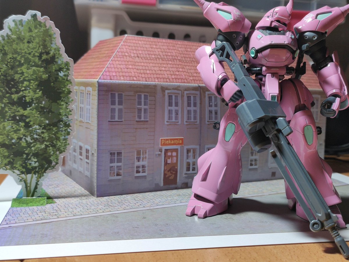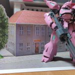 1/72 scale building for use as a backdrop. I know the scale isn't the same as 1/144 gunpla, but I'm happy with how it looks 🙂 Papercraft pattern is from Kami no Seisakusho (kamino-ss.jp/download.html) #gunpla #papercraft #diorama #ガンプラ #ペーパークラフト #ジオラマ