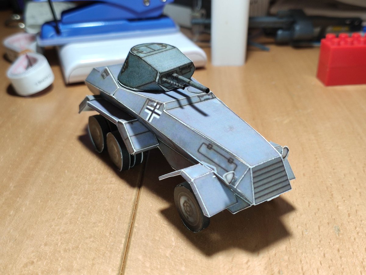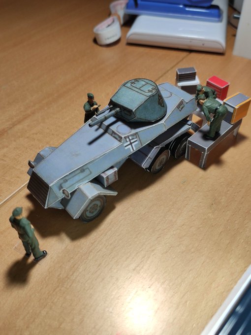 1/48 Sd Fkz 231 (6 wheeler) Wehrmacht armoured car (w/ Tamiya 1/48 tank crew figures) Paper pattern from "der kampfflieger" I upscaled the pattern from the original 1/72 scale, a very interesting learning process. #papercraft #ペーパークラフト