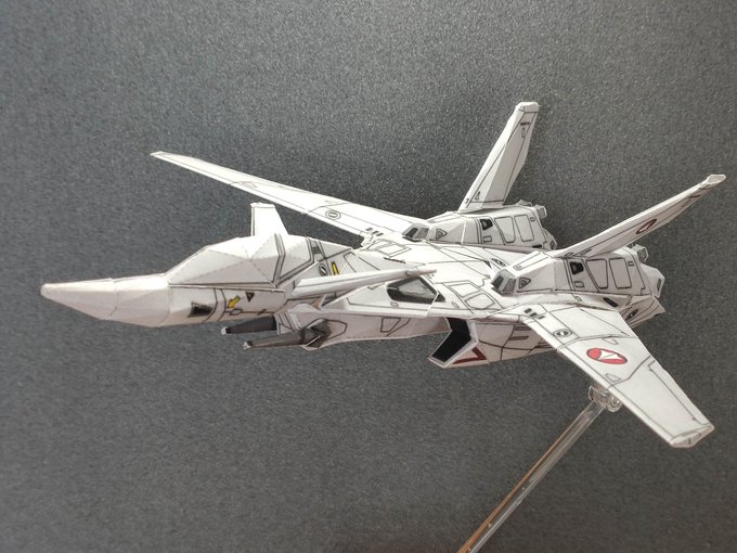 VF-9 Cutlass papercraft. Very complex, many pieces and folds, leads to instability when gluing (model ends up looking wonky from some angles eg nosecone 😩) Still love it 😍 Pattern from Sascha Kunzke (sd-sascha.com/site/gb-paper.…) #macross #マクロス #papercraft #ペーパークラフト