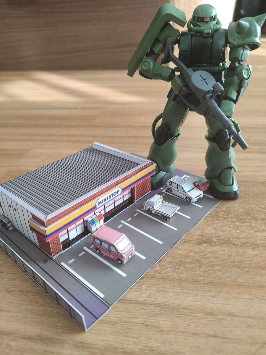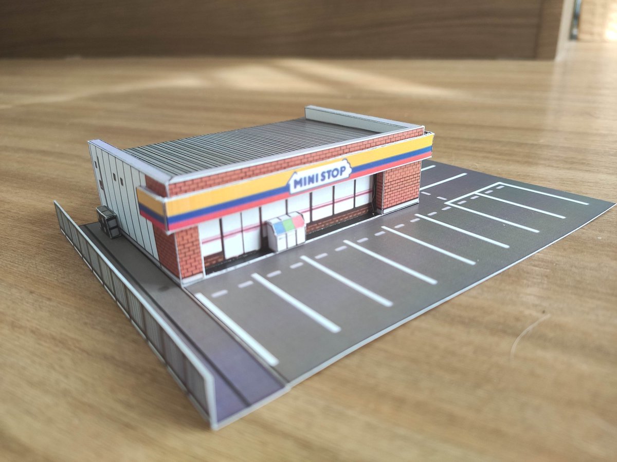 1/144 paper craft combini. Paper pattern from ペーパークラフトN管理人. Author no longer hosts this paper pattern, all I could find here low res pics so I used an ai upscaler to make it a printable resolution and added in the Ministop logo #papercraft #ペーパークラフト