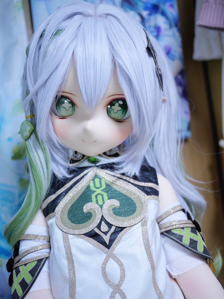 実はナヒーダちゃんお迎えしてます(4/20)w セットするのに時間が掛かったり病状が進んで気分的に落ち込んでいた事もあり遅くなりました。 装飾の所に包帯巻いてあるのは色移り対策。 髪飾どう付けるんだと思ってイラストと睨めっこしたりしてたw カワ(・∀・)イイ!! #グアバドール #GUAVADOLL