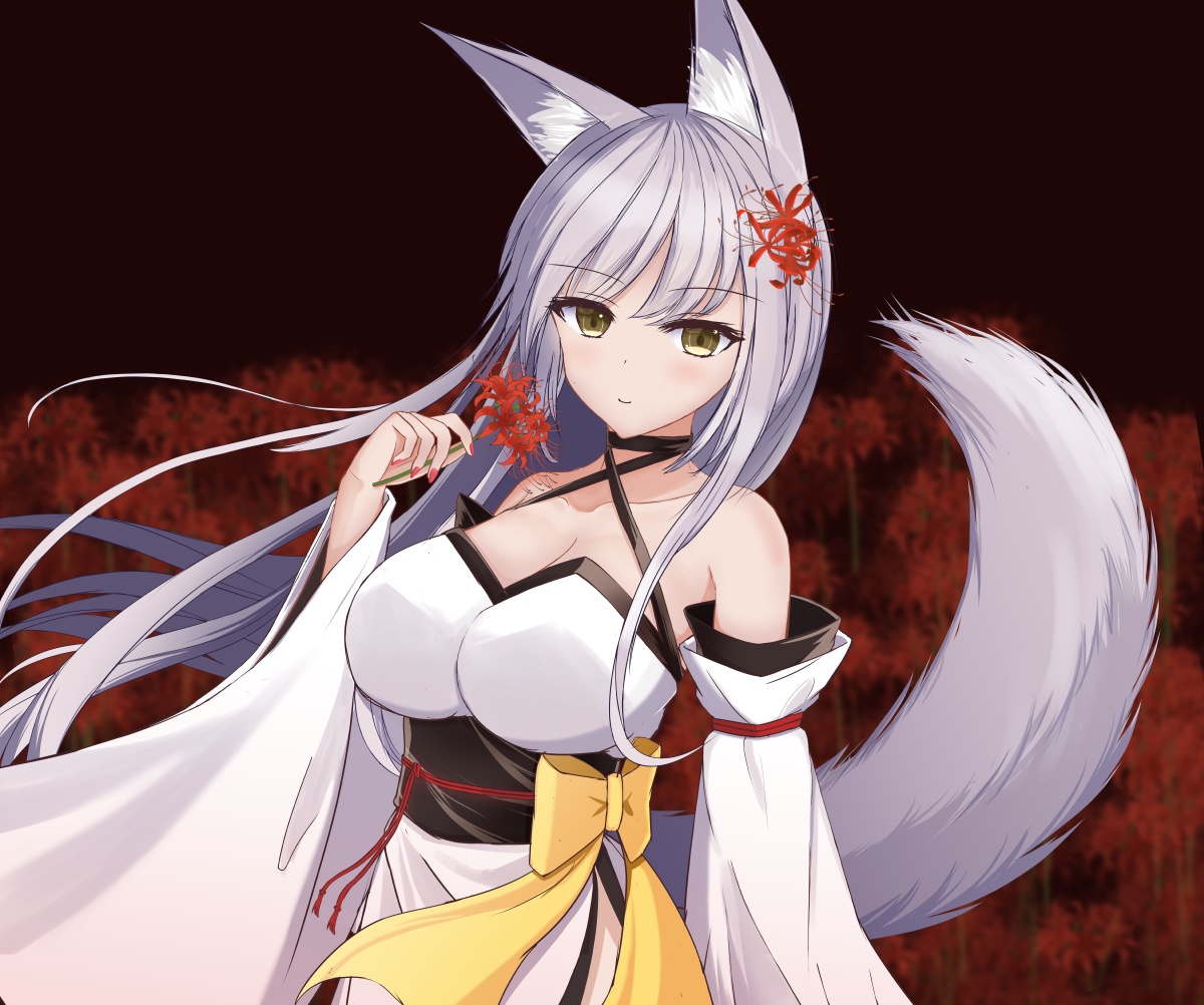 彼岸花の妖狐 #オリジナル #狐耳 #珠沙 pixiv.net/artworks/10426…