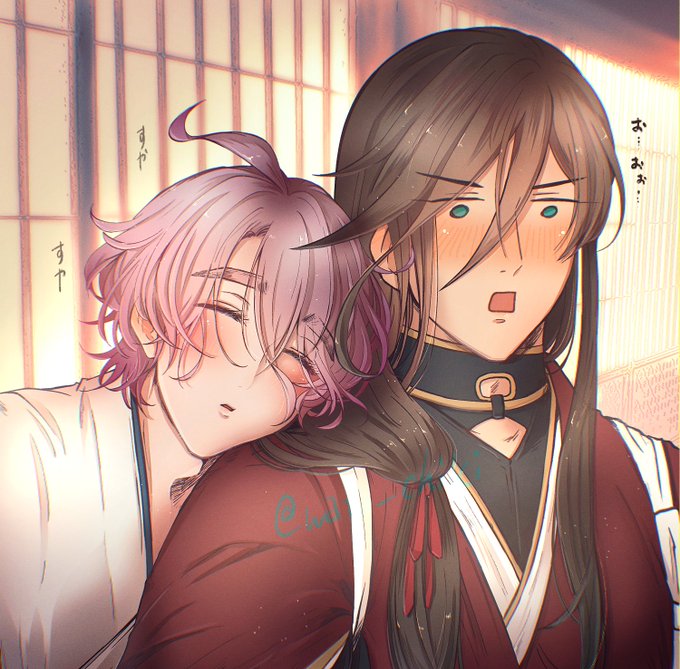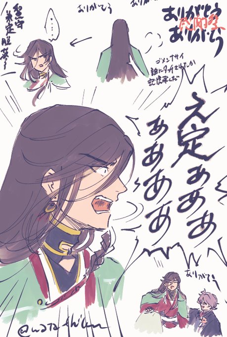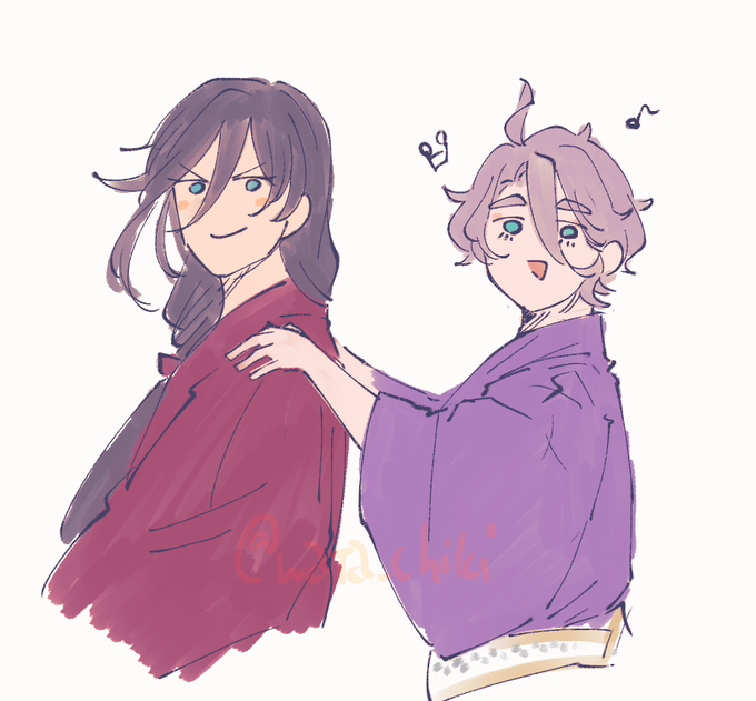 描きました🎋ちょっと遅れた七夕夏兼歌チャンです🎋加工したら浅葱が別の色になっててごめんね!!尚そいつの願いは叶います兼歌なので!!!!!!!!🥳🥳🥳 twitter.com/wata_chiki/sta…
