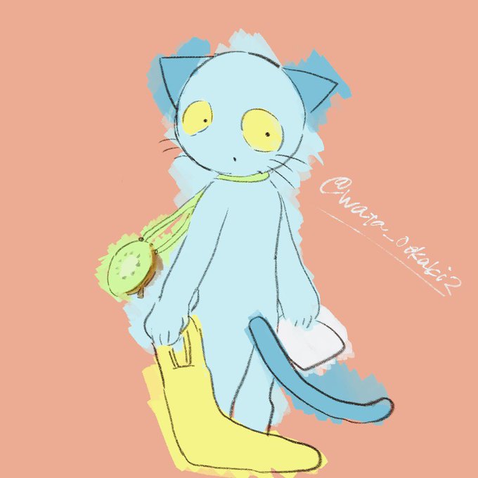 #ねこのティーチくんワンドロ お題「おつかい」 制作時間:35分 テチくんにキウイポシェット持たせたい🥝