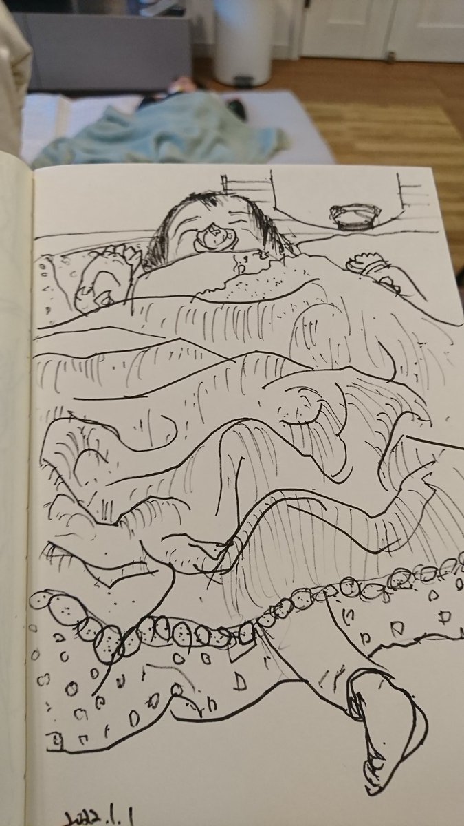 0 4 明けましておめでとうございます。本日、家族が集合。孫二人を手帳に描き初めしました。 #正月 #孫 #スケッチ #手帳スケッチ #寝姿 #ペン画 #人物画 22/01/01 20:19