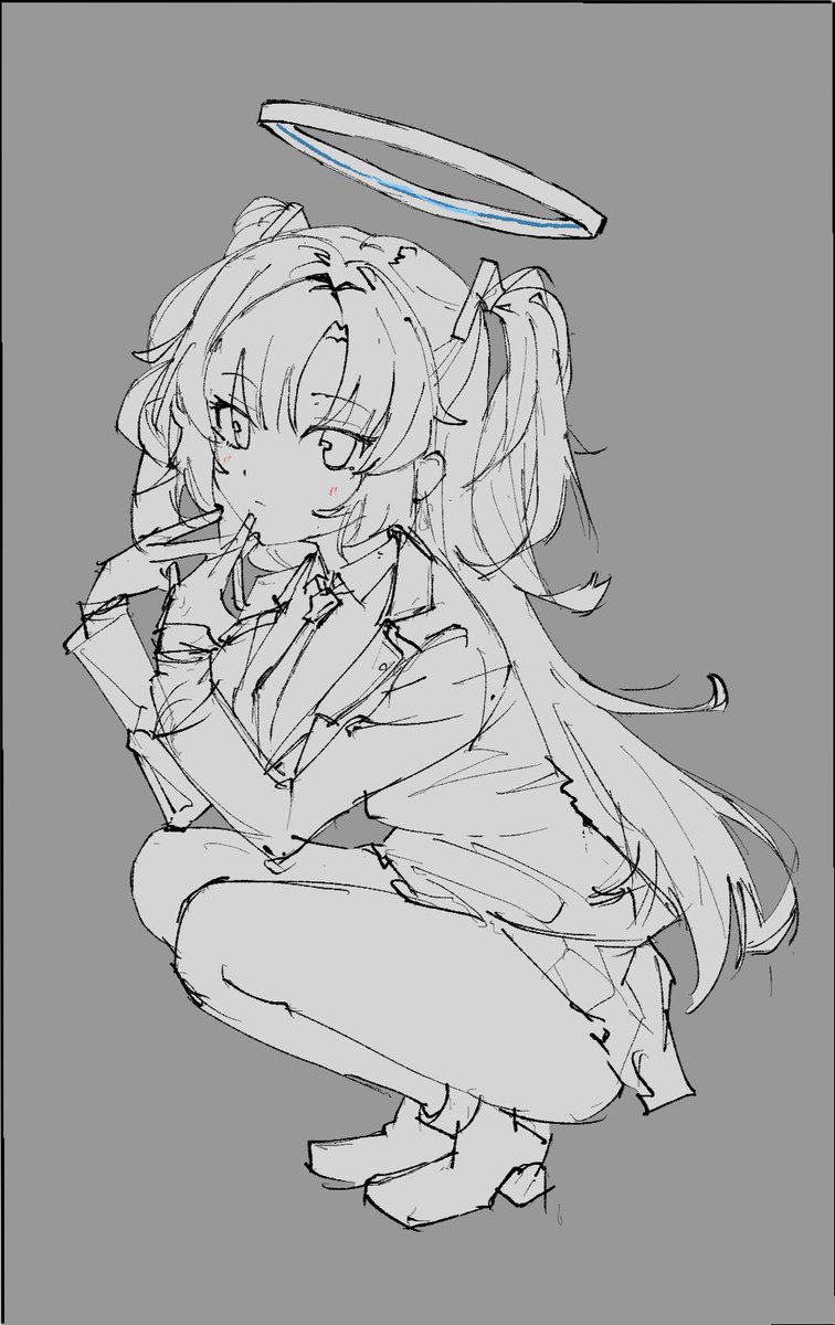 ワンドロで描いたやつです(お題:アホ毛、ピアス #光のお絵描き練習会