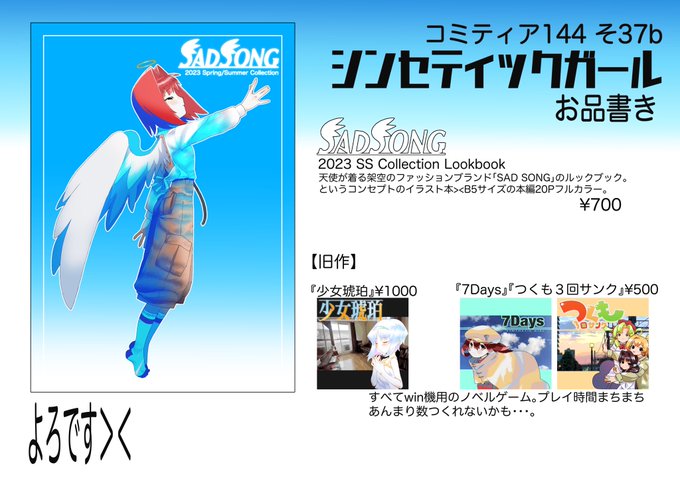 16 20 明日の #COMITIA144 のお品書きです 既刊のみですが、少女琥珀のAndroid版を審査に出してるので、間に合えばそちらの案内なども配布してると思います。 ヤボシキイはいません。ヨロシャス! 23/05/04 13:56