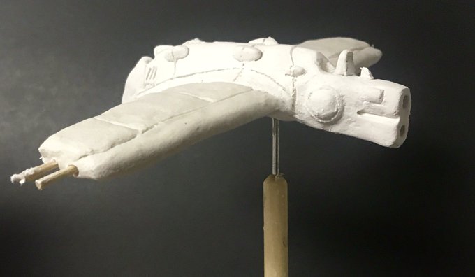 主翼とキャノピーの淵を盛り中 #ナウシカ #石粉粘土