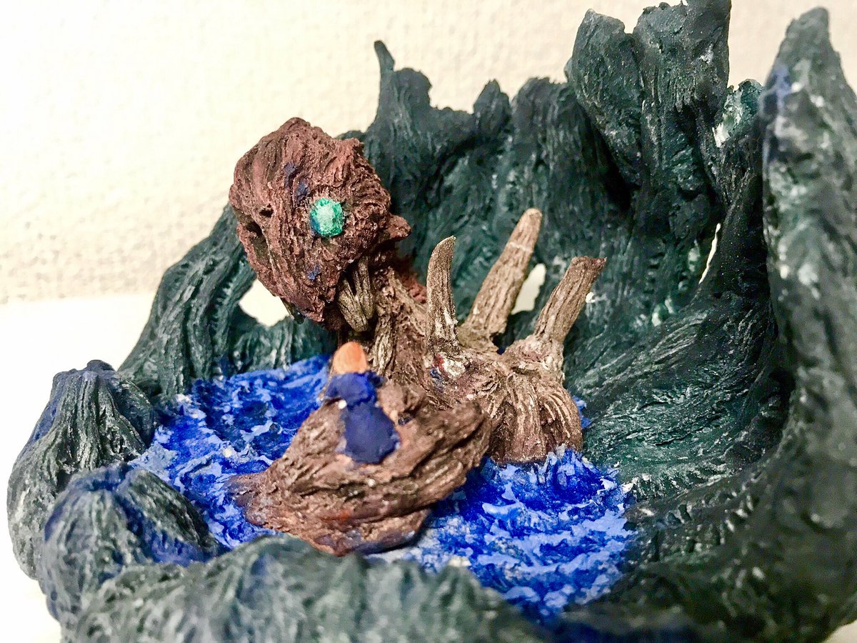 私は 私を産み 私を導き 私に名を与えた小さき母にのみ従う #風の谷のナウシカ より巨神兵オーマをダイソーの石粉粘土で作りました。 シュワ攻防戦時をイメージしつつデザインを趣味マシマシにアレンジしましています。 #ジブリ #ナウシカ #粘土