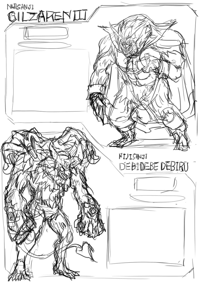 『強殖装甲チャイカー』メイキング?w こんな感じで、ラフとって模写りながら アレンジしつつ描いているので 普通に大変だし、それなりに時間かかるし すごく楽しいw #お花畑青空大写生大会 #しら画 #でびるさまにささげるえ #にじさんじ #強殖装甲ガイバー
