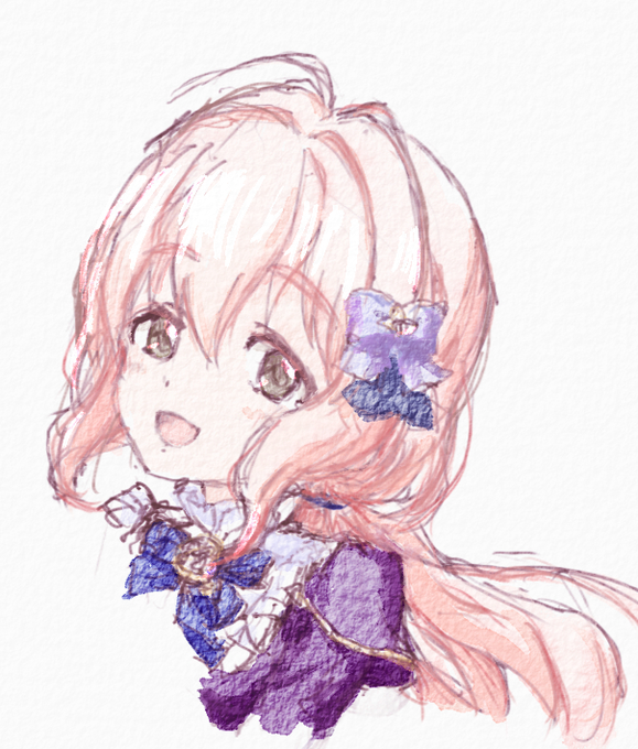 習作琴歌...... 線画:鉛筆 色:インクメインで細部は鉛筆やマーカー ハイライト:インクメインでビビッドライト サッと描きやカラーラフはこの構成も良い感じ #Rebelle5