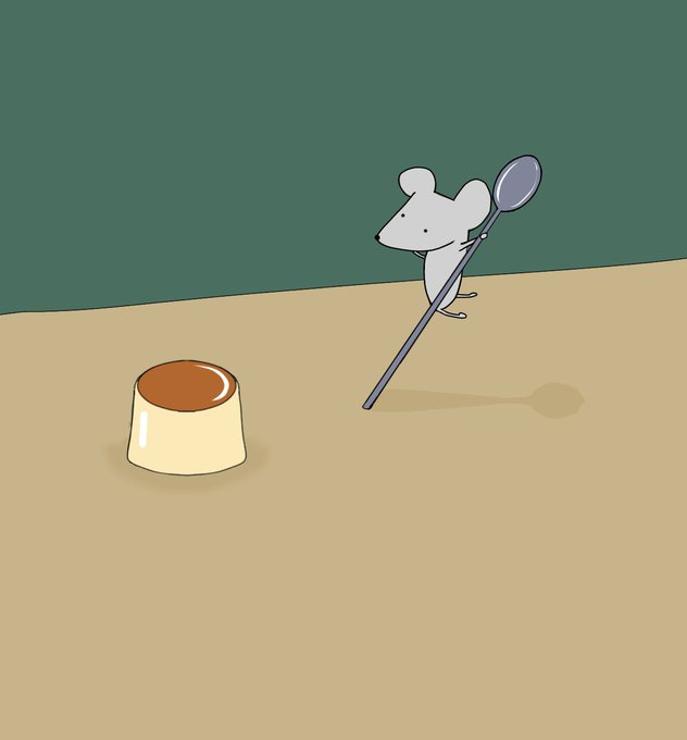 『スプーンで高跳び。』 #イラスト #絵 #ねずみ #高跳び #プリン