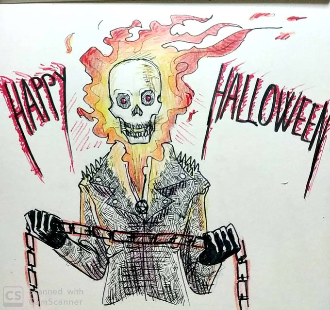 Día 31: HALLOWEEN. ¡Y sanseacabó! Aquí un dibujo de Miranda como el Ghost Rider. Este año si he podido terminar el inktober más o menos a tiempo, y estoy bastante orgullosa de mí misma :D En fin, ¡Feliz Halloween! #inktober #inktober2019 #halloween