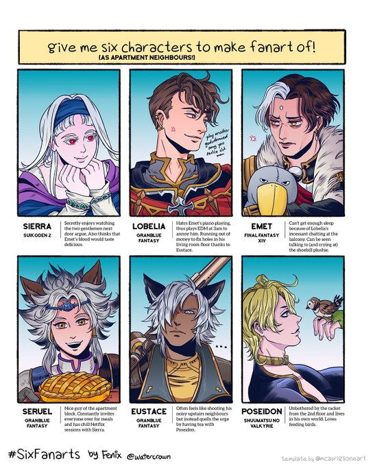 Did #SixFanarts with a slight twist and imagined them as apartment neighbours! :D I know next to nothing about anyone except for Sierra and Emet LOL #SixFanartsChallenge