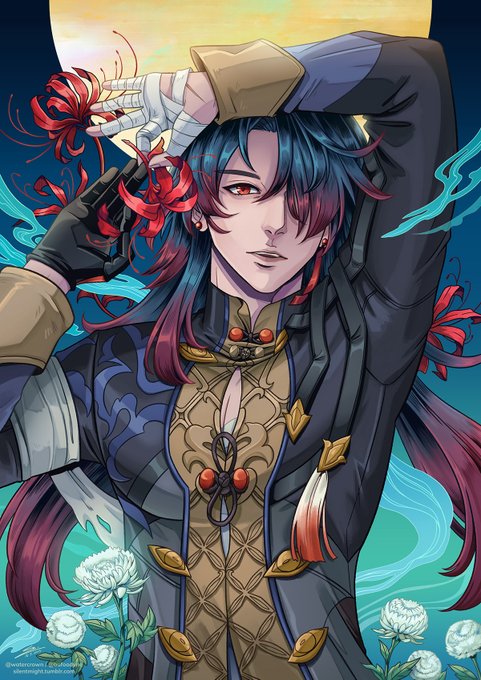 for the flowers that bloom in deep darkness, they whisper for him a final goodbye under the cover of moonlight – pt2 of a pair of flower-themed arts #HonkaiStarRail #honkaistarrailfanart #刃 #Blade #FanArtContest